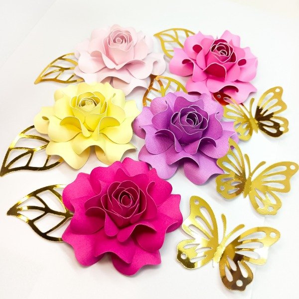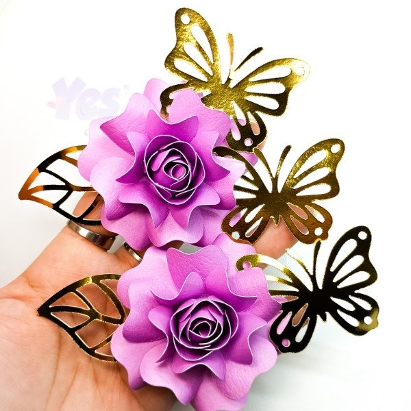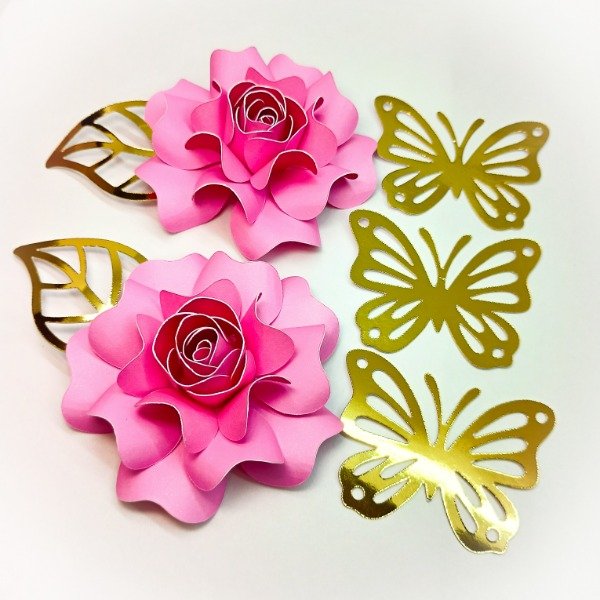 + 3 mariposas de 5,5 cm de ancho por 4,5 cm de alto, van combinadas con las hojas.
