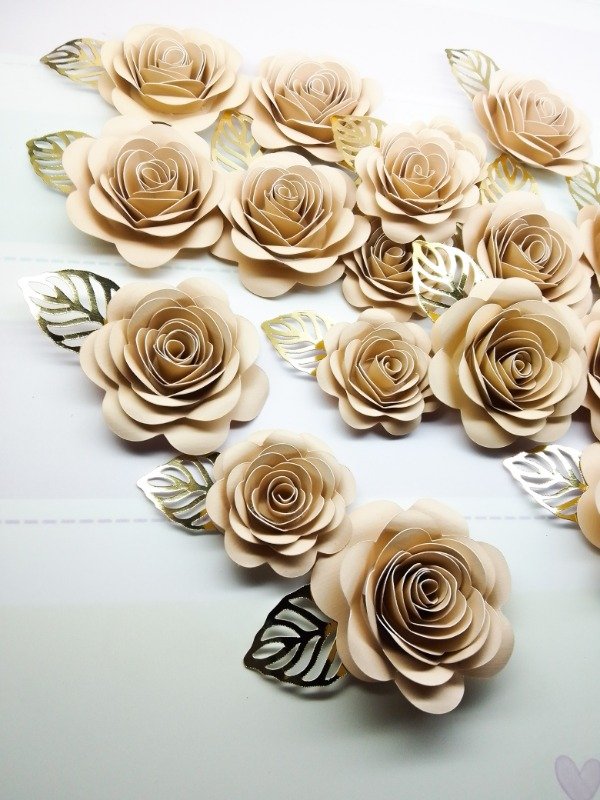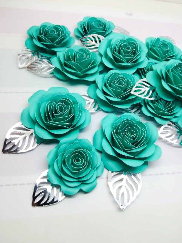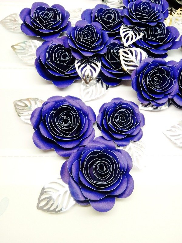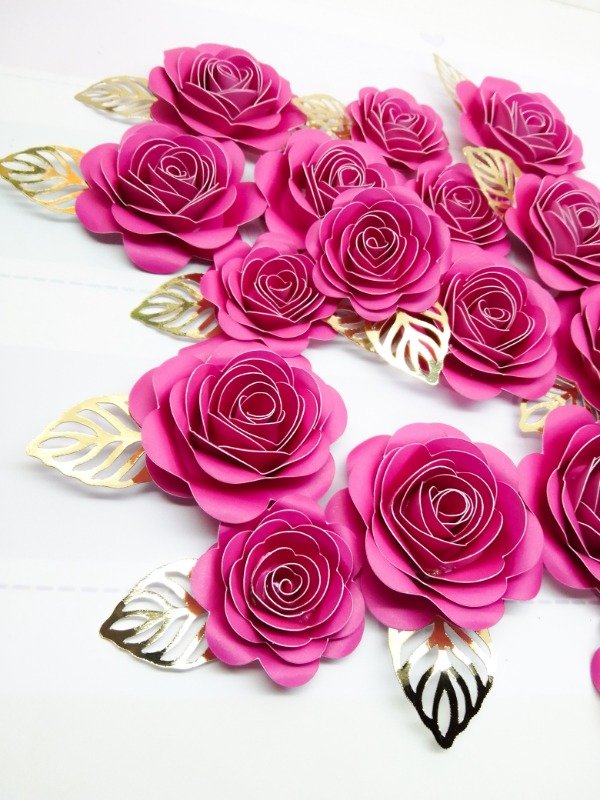 Cada paquete contiene 2 rosas de 7 cm aprox. con hoja espejada mide 9,5 cm aprox. en total + 1 rosa de 5,5 cm aprox. + hoja espejada mide 7 CM. Las hojas pueden ir doradas o plateadas.